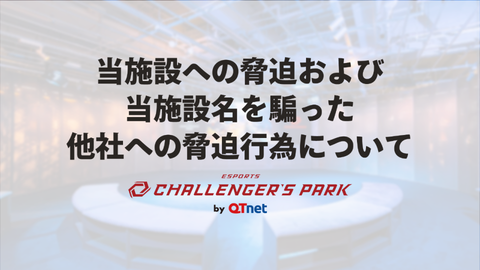 昨今、メールやお問い合わせフォーム等で当施設「esports Challenger's Park」の名前を騙り、架空請求や爆破予告等を行う事例がございます。